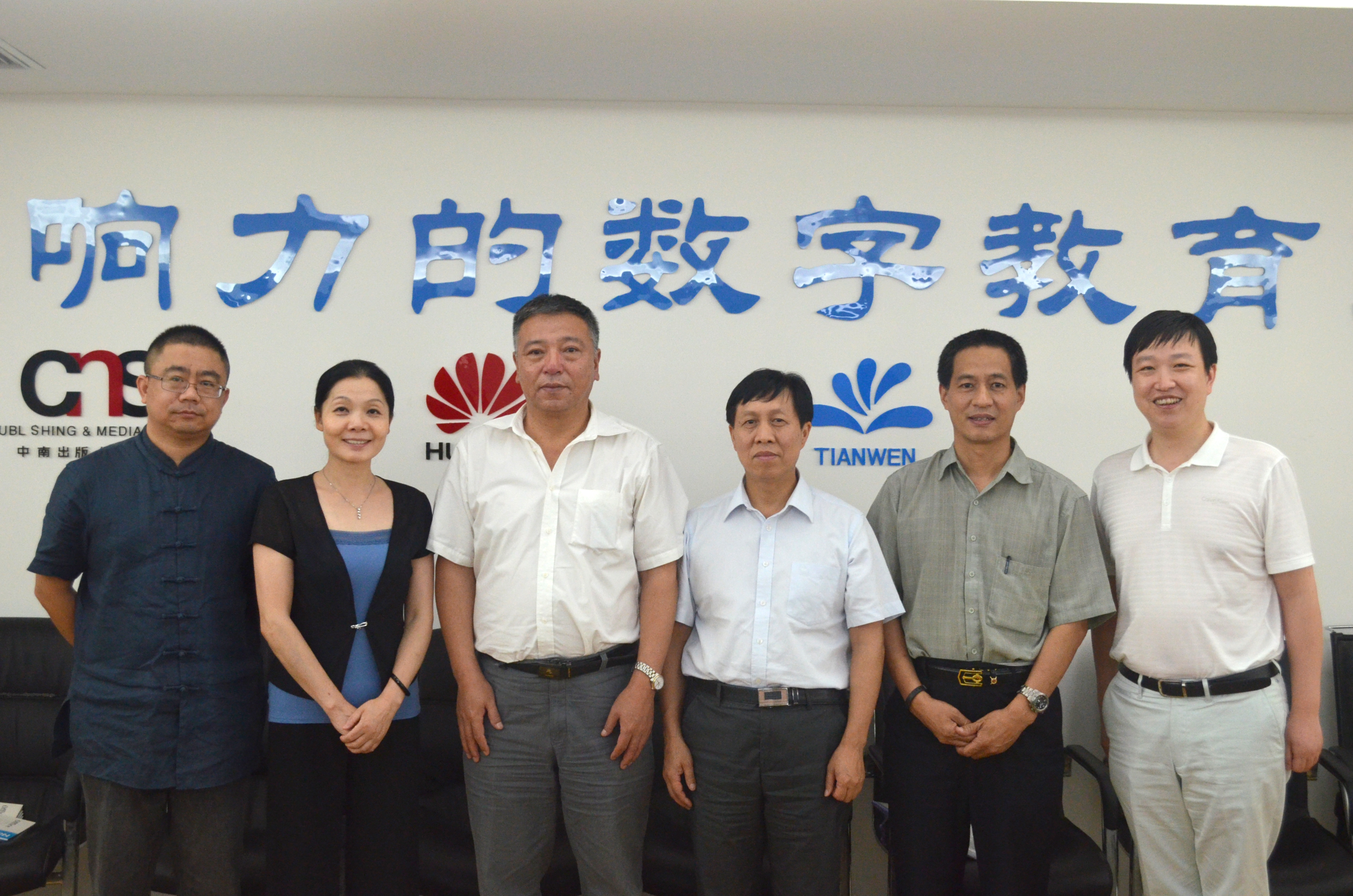 中南传媒常务副总经理,天闻数媒董事长彭兆平(左二)陪同谢俊旗司长(左三)视察天闻数媒